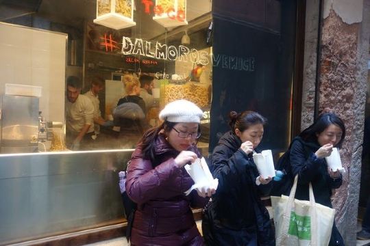 虽然这家餐厅非常小,而且也不太好找,可是依然有很多人慕名前去。小小的弄堂里挤满了端着白色餐盒吃意面的人。从名字就能看出,这家店没有堂吃,很多人买了面都是直接捧着吃。进了这家店先选择意面的种类,然后再选择口味,新鲜可口的意面,美味又便宜。