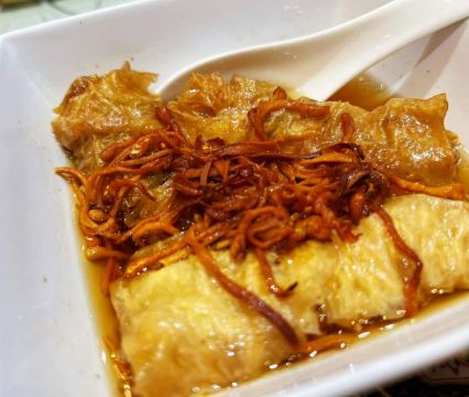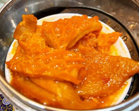 红烧乳鸽,招牌黑金包,叉烧,凤爪,虾饺,牛百叶,象拔蚌,龙虾油面,清蒸东星斑,牛肉丸汤,龙虾