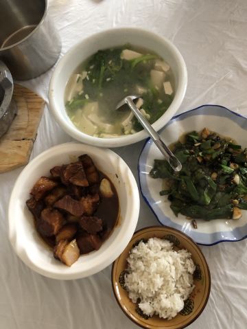 干锅竹笋,火焙鱼,家常豆腐,毛家红烧肉,黄鸭叫煮豆腐,清炒油菜,酸辣鸡杂,干笋炒腊肉,时令小菜,紫菜肉末汤,毛氏红烧肉,黄焖土鸡