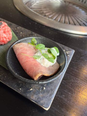 Toro Sashimi,Wagyu Tartar / Egg Yolk,Sashimi,beef tongue,Harami Skirt,Garlic Japanese Wagyu Rice