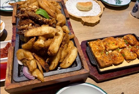 古树鲜奶茶,沙葱土豆泥,小痴烤羊排,烤豆腐,蔬彩稍麦,烤羊肉串,精品烧卖,香烤小羊腿,手扒肉一条羊腿,烤酸奶饼,小痴毛血旺