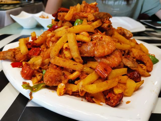 YoYo_1U1R1N7N从哈密自驾到吐鲁番约400公里,中途几乎无餐饮,所以,晚餐慕名而来准备好好干饭。 对于南方人,看到环境超级惊喜,新疆菜啊,好期待。 一个小男生过来给我们点菜,点了鱼,牛肉,烤羊肉,手抓饭,烤包子,青菜,橙子汁。然后就是漫长的等待。 由于中午没吃饭,长途自驾,在等待过程中就有点低血糖不舒服,大概过了一个小时,催促了好几个服务员后,然后一姑娘过来说我们没有点菜。 居然没有落单,还等了一个小时,抓狂。 又重新点了一遍,又开始等待。 终于来了手抓饭,一个青菜 ,又来了一杯橙汁。 又漫长的等待。 又催问服务员,赶紧上个烤包子吧?毕竟现成的。 包子来了,吃了手抓饭,青菜,包子已经饱了,全程已经一个半小时了。 拿着桌牌准备去买单,问服务员到底还有哪些菜没上?哈哈,经过艰难的沟通,压根就没落单鱼,牛肉也没上。 不要了,不要了,准备买单,2分钟内牛肉又来了。 好吧,除了环境,不能太理解这上菜速度和下单的准确率。做一个小时也没人问为什么没有菜吗? 南方人第一次入新疆吃新疆菜的记忆好深刻。