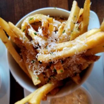 这个咖啡吧其实是一个俱乐部哦,里面的汉堡包做的很不错哦,这个薯条做的很不错,上面有很多的芝士,入口有点点咸咸的,不错哦。