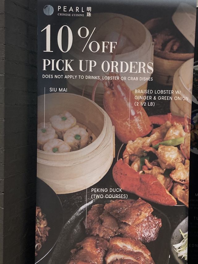 Pearl即“明珠阁”,Bayview Village Shopping Centre中唯一的中餐馆。有烧卖、北京烤鸭、春卷、炒饭等。外卖自取9折。