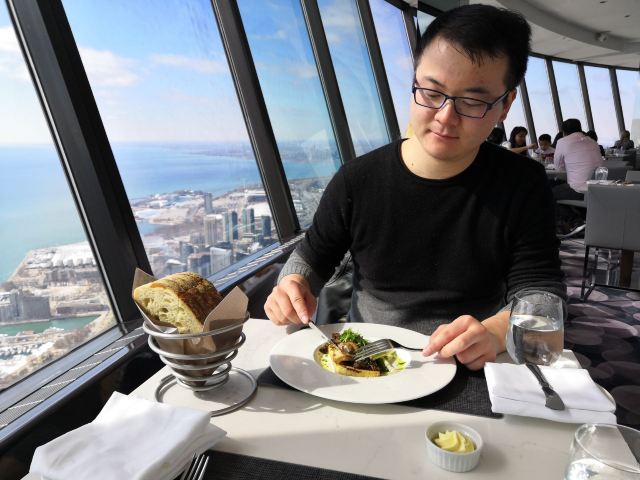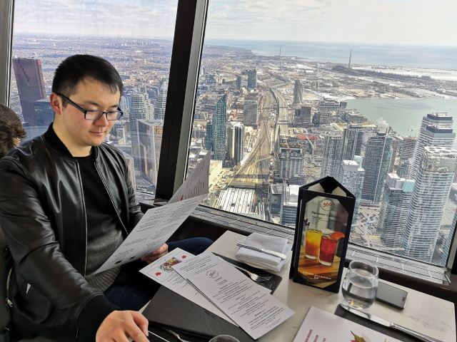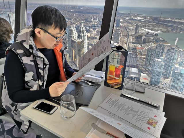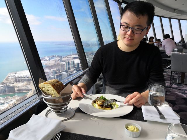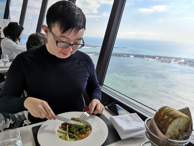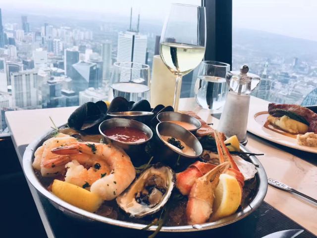 360 The Restaurant at the CN Tower加拿大国家电视塔360度旋转餐厅是我觉得性价比非常高的一家餐厅。虽然这家餐厅的价格真心不便宜,2个人的总消费大概是人民币800元左右(含小费)但是吃一顿饭就可免费参观还是非常划算的。毕竟门票是非常高昂的价格。