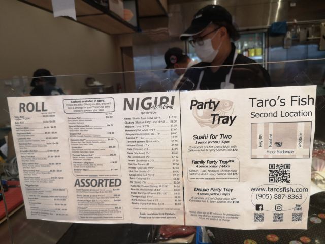 Taro's Fish多伦多美食# -Taro's fish 海鲜超市详细测评,附外卖菜单😎 身边朋友一直和我推荐 #多伦多 #Taro's Fish 日本海鲜市场,里面有很新鲜的鱼生🐟还有海胆!波士顿海胆一大板才$39 这个价格OMG!在日式居酒屋吃海胆刺身或者豪华海鲜丼也差不多这个价格吧😎 他家在north york的店1996年就开业了,因为货真价实,物美价廉,所以生意红🔥在 #Markham 才开业了一个分店。 店名: #Taro's Fish 地址:735 Markland St, Markham, ON L6C 0G6 位置便捷度:🌟🌟🌟🌟🌟 北边的宝宝们也有口福咯!在plaza里面,好停车。周六下午我才去,需要排队一小会。很快,五分钟就到我们了。 食物:🌟🌟🌟🌟🌟 店内各种鱼生,可以买一盒让师傅帮忙切好。一起去的老外朋友说特别喜欢日本的mochi,说曹操cc就来。各种口味大福饼~拿起🤩 去太晚,海胆卖完了[哭惹R][哭惹R][哭惹R]我包海胆的海苔都买好了,就差海胆了。。想哭~买了其他东西和牡丹虾。抹茶蛋糕和芝士蛋糕看着也不错,入手! 对了,这边有卖Take out sushi的!外带寿司🍣可以。双人套餐 $70 有32片寿司!感觉比单点划算,也不用动脑子~买买买!!感觉肉质非常新鲜~强烈推荐!!!毕竟人家本身就是生鲜超市啊哈哈哈! 还有一些日本的面条🍜 调料,饮料,熟食什么的。感兴趣的都可以入手🤩 安全:🌟🌟🌟🌟🌟 店内控制人数,必须戴口罩。然后门口有很大消毒纸巾。店内明亮干净~虽然很小巧,但是感觉很舒服!一切都井井有条。 多伦多美食-Taro's fish 海鲜超市详细测评,附外卖菜单