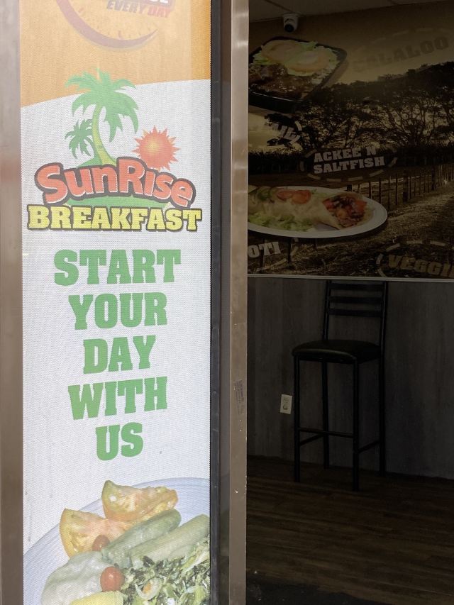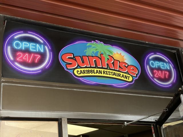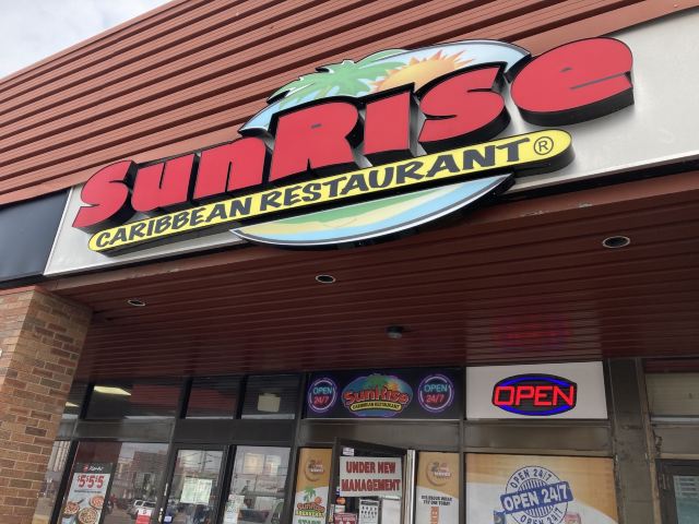 此地址曾经是Sunrise Caribbean Restaurant的最大分店,如今已结业。剩下最近的一家分店,位于北约克的1949 Finch Ave。加勒比海餐厅,一周7天、每天24小时营业。主打挺举鸡(jerk chicken),也有炸鸡。