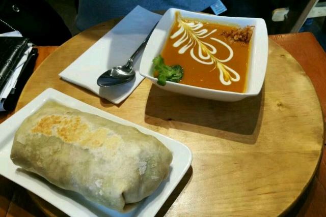 里面的墨西哥大饼很好吃,超级大一个,配上一碗咖喱汤很不错,味道一流,这个饼可以足够一个小孩子和一个大人一起吃了,有拳头这么厚。