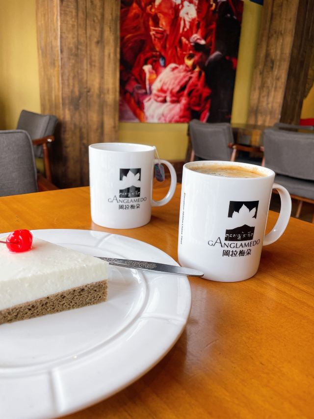 Ganglameduo一直刷到这家,看评价还不错,正好最后一天逛完路过这里,而且店就在路边,上去歇个脚 称为艺术餐厅大概是因为4楼是摄影的,3楼是餐厅 去的时候可能刚过饭点,没什么人,挺安静的,以为五一人会比较多呢 美式团购5块一大杯,还要什么自行车,味道还可以,豆子不涩,对于想要摄取咖啡因足够了 青稞酸奶蛋糕竟然还蛮好吃的,下面的蛋糕有点像我们这儿方糕的口感,有青稞的清香,蛋糕不干,可见新鲜,上面是慕斯口感,酸奶味道还行,整体蛮清爽的,超出预期 大吉岭红茶是袋泡的,没见过的茶包,还OK 服务也挺好的,团购的套餐挺多,在高物价的拉萨性价比很