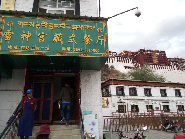雪神宫坐落在布达拉宫广场西侧,号称是拉萨最高档最正宗的藏餐厅。典型的藏饰装修,浓郁的藏族风情,颇具特色。服务员均为清一色的藏族姑娘,汉语流畅。特色菜有烤牦牛肉、牦牛舌、土豆包子和人参果炒饭等。