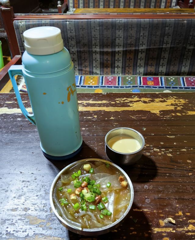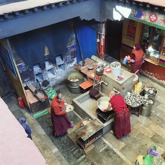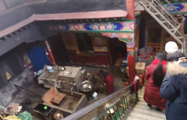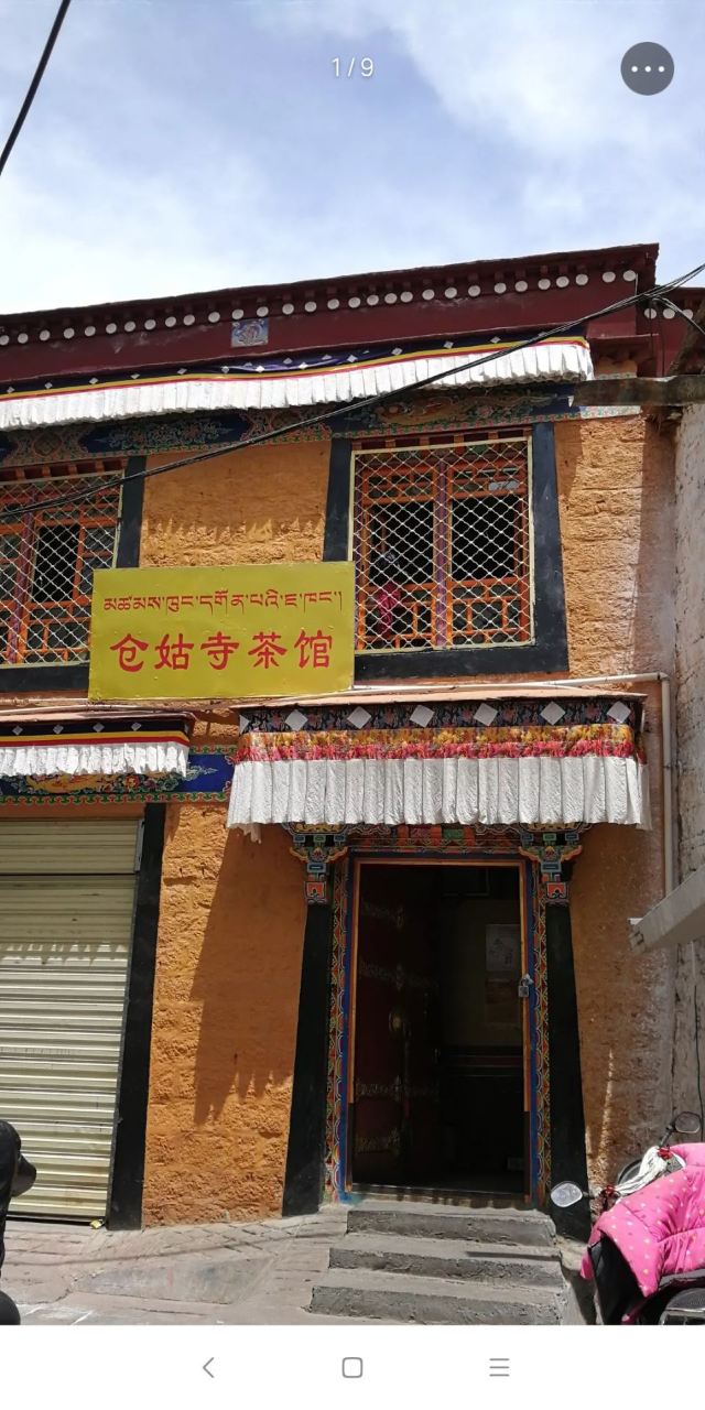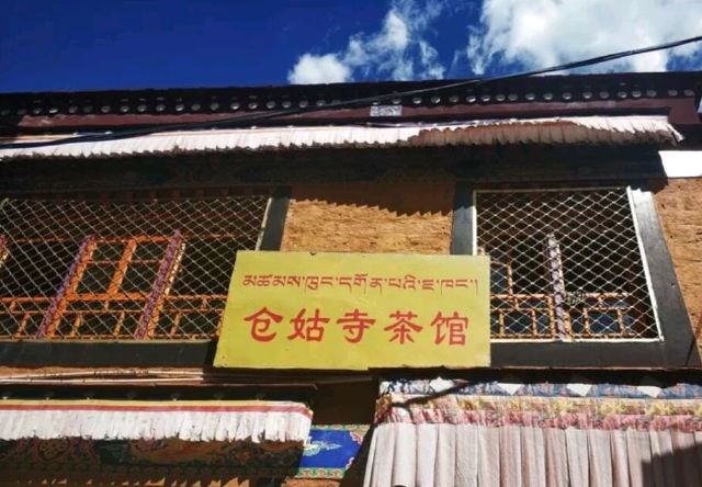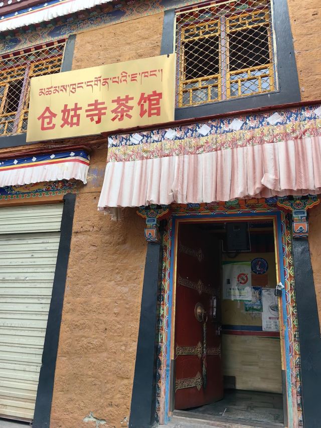 仓姑寺里的地道藏民餐馆。穿过前门,后院豁然开朗。店内干净舒适,店面虽小,但是坐满了喝茶的藏族老人。炉灶上正熬着的甜茶飘散着香甜的味道,藏族老人转经筒的声音让一切都显得悠闲惬意。