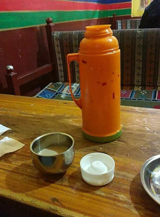 藏族人以家为业设了这样的茶馆,简单直接,不带客套。 坐下也就随随意意,点单很简洁,也就几个品种,喝的甜茶吃的面食。 本族街坊邻居来坐坐,轻生交谈,也不絮絮叨叨,老板娘说你们喝了随便自己加茶,顾自己洗衣服去了。