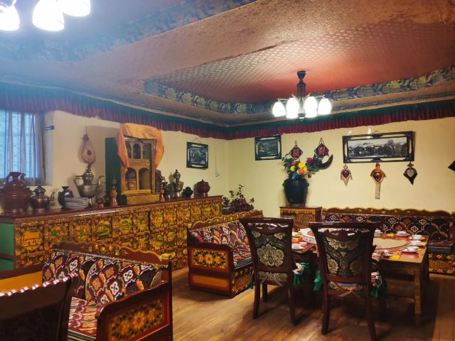 一家知名度很高的风味餐厅,在一条不起眼的胡同里,有一个庭院和上下两层楼的空间,内部装修简洁明亮,桌椅摆放整齐,外部花草茂盛,像一个小花园。土豆包子很好吃,外面是土豆泥,里头是牛肉馅儿,价格便宜,关键量还不少。服务员都是藏族,很热情。