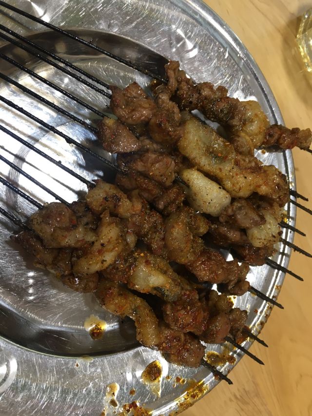 在大昭寺西面的小巷子里,有一家门脸小小的烧烤店,还没走近,就能闻到一股烤肉的香味。拉萨的本地人都喜欢来这里撸串儿,羊肉串不得不说味道最好,肥瘦适宜,羊肉味浓郁。羊蹄筋、土豆片、拌面也还不错,环境不太讲究。