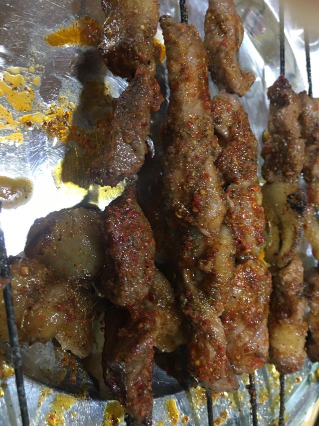是在八廓街里面的一个巷子里,挺好找的, 很热情,给推荐什么好吃。 (烤羊肉串]其实所有的肉都很嫩~ [烤牦牛肉]这个稍微有点硬 [烤羊肝]很嫩,挺好吃的。