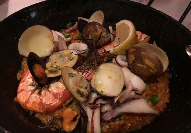 店面不大,隐藏在一个巷子里,吃西班牙菜的小酒馆。生意特别好,常常挤得水泄不通。他家的招牌料理是海鲜饭,饭里有虾子、牡蛎、鱿鱼等海鲜,料很足,吃起来非常满足。除了海鲜饭,他家还有各种西班牙小吃,配上西班牙果酒,非常适合朋友聚餐。