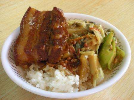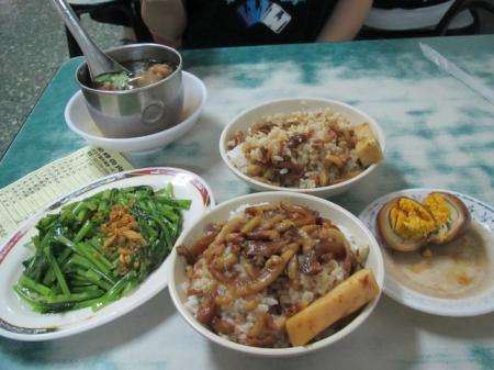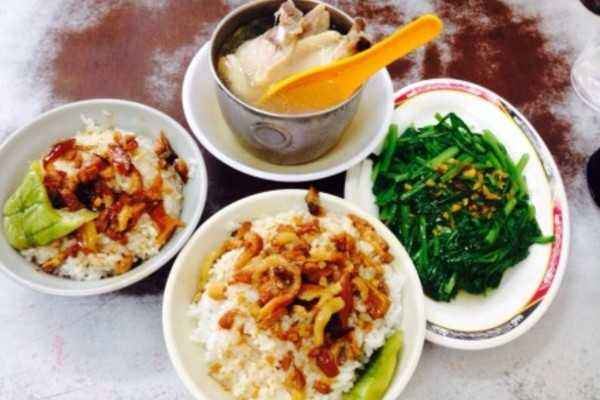 鲁肉饭,油豆腐,凤梨苦瓜鸡汤,排骨酥汤,肉羹粉丝,卤蛋,人参鸡汤, 烫油菜,烫地瓜叶,香菇脚筋肉汤,头髓汤(脑髓汤)