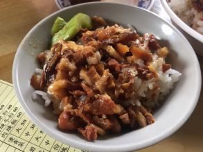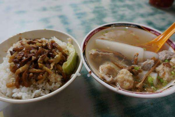 南门市场旁的金峰卤肉饭,就算是平日去,人潮一样可观。不过翻桌率高,等一会就排到了。来这家当然要点卤肉饭,刚开始吃时口味咸香,肥肉入口即化。再加点卤锅内的卤蛋,豆腐,或再烫个青菜,平衡下卤肉饭稍稍的油腻,正好。这家卤肉饭口味偏重,喜欢卤肉饭肥肉较多的人应该大爱。他家价格也非常亲民,所以生意一直很火爆。