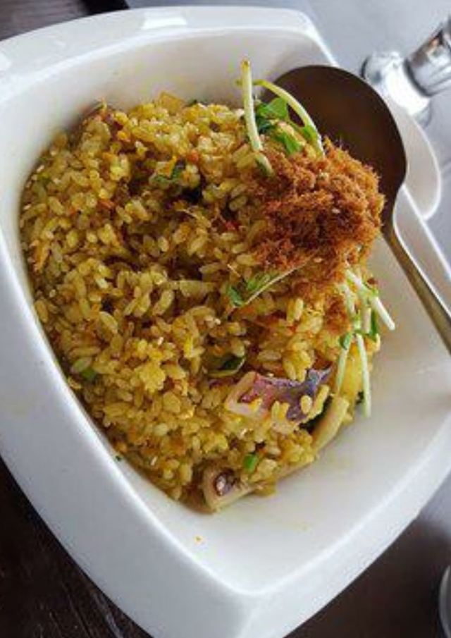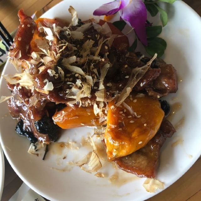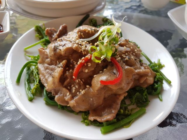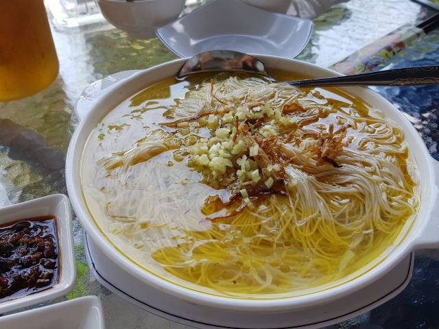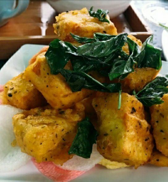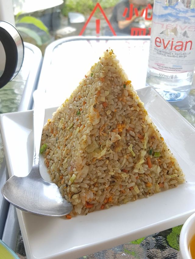 四哥的店位于猫空,能在一堆景观和茶料理店家中脱颖而出,必有两把刷子。店里的餐点以茶为元素,结合食材,推出很有特色的茶料理,而且还附茶。茶叶炒饭,口感清香清淡,每一口都隐约吃到茶香。看来以茶入菜,不仅仅是噱头,确实让人有惊喜。赶上天气晴好,在猫空看风景真是很享受的事情。其