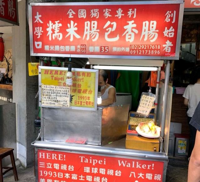 每次去公馆转转时,除了必吃的蓝家割包,陈三鼎的青蛙撞奶外,这家也是必光顾的。位置就在这两家的对面。可以一次买齐三家,非常方便。这家太学口糯米肠包香肠只卖糯米肠包香肠和香肠二种小吃,很有个性。下午二三点过去,居然也要排队,生意实在好。买糯米肠包香肠可以选姜丝,蒜头,辣酱,香菜,萝卜干等配料。一口下去,口感Q 软扎实却不黏牙,加上香肠浓香的肉汁,配上爽口的配菜,多层次的口感与味道,让人一口接一口。
