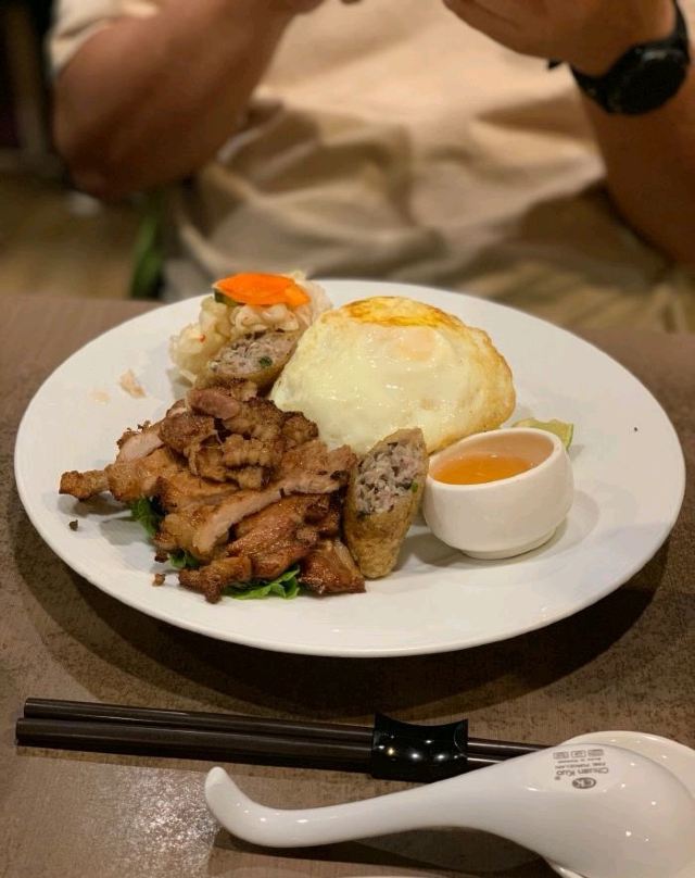 要了一个脆皮鸡排饭,一个越南河粉,河粉的味道还行,主要那个牛肉比较的嫩,还有就是鸡排做的也可以,比较好吃,鸡蛋半熟,一般般。