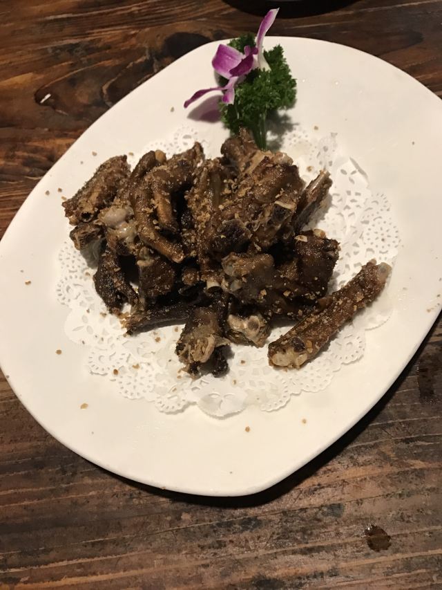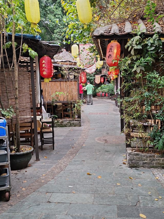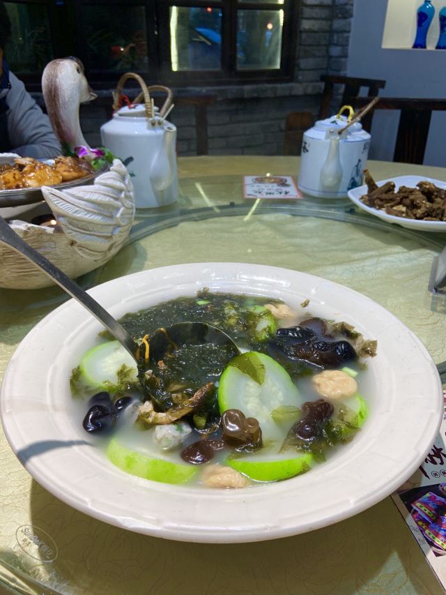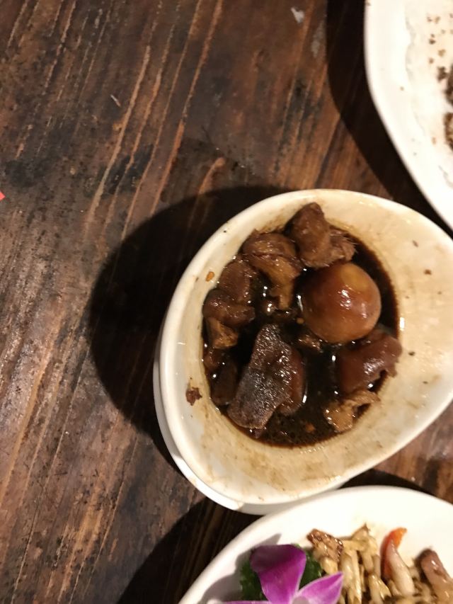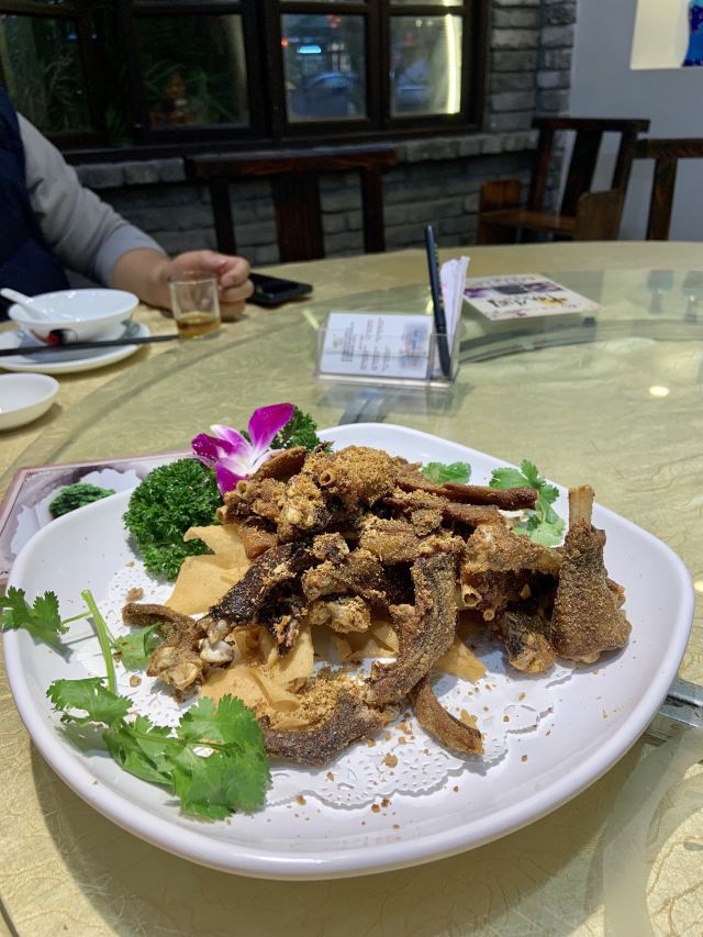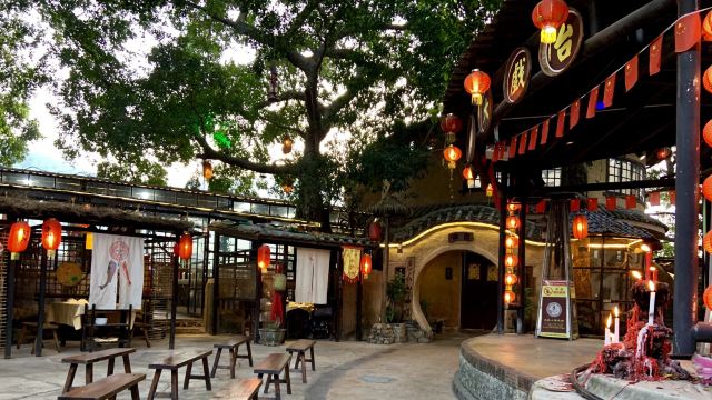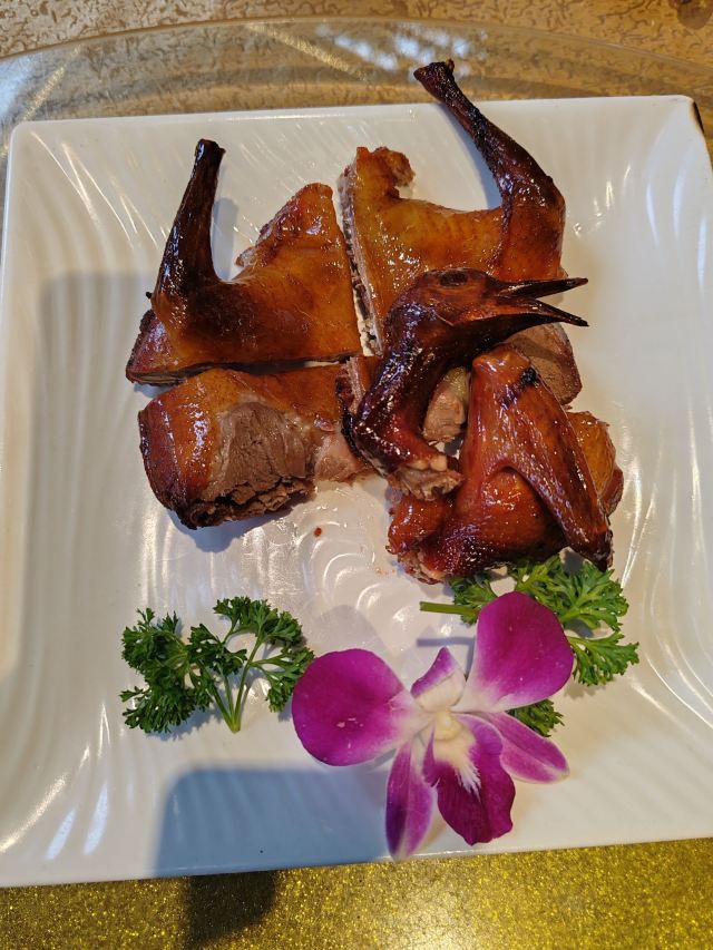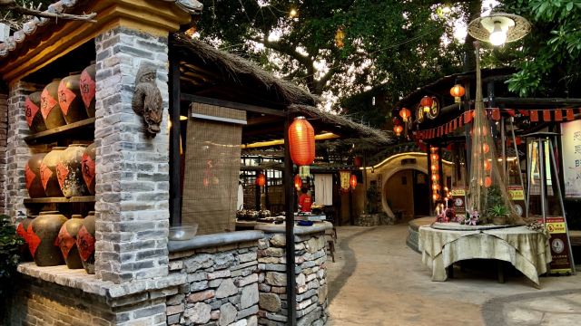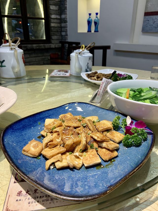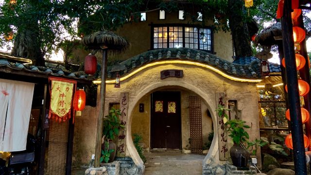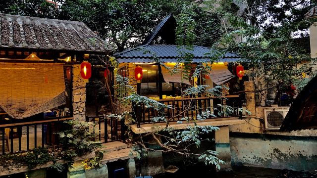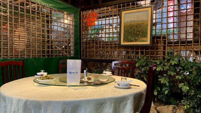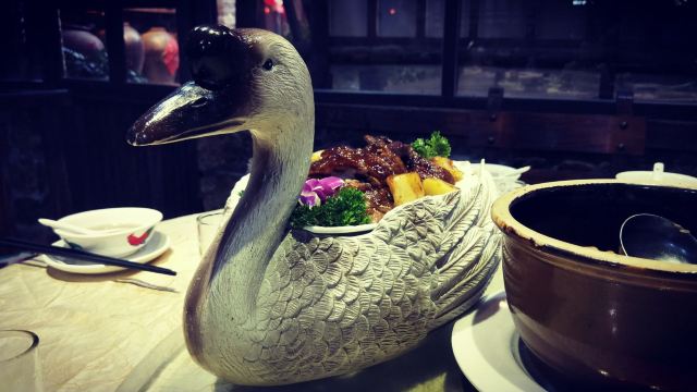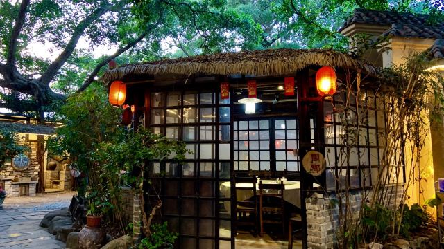 被惊艳到的一家餐馆!!!建议必去!!! [薄荷]环境: 餐馆在一个小村里,看门面以为仅仅是家私房菜,进店后还没吃就被吸引了,四处鸟语花香, 每个包间错落有致,有室内包间、草屋包间、庭院包间、小艇包间…装饰各异,一开始以为是原本的大院改建,却听说是特意做旧,用回收的旧材料重新建的,真是惊掉我的双下巴,还有老板这么花功夫经营一家餐馆。 [服务铃]服务: 服务员没有过分刻意的服务,让到来的人自己感受现场的环境,品味该餐馆的美食,棒棒哒 以为只是环境有心思还很不够,这里的菜品也是扛扛滴,不是很名贵的菜肴,但有吃得出的心思。[调皮] 「五味鹅」虽然整只鹅上,实际分量不大,天气冷,底下有小火加热,鹅肉还是有点凉,不过味道咸淡适宜,非常入味,鹅肉松软,可轻易咬开。 「陈皮鸭翅」很喜欢的一道菜,陈皮味很清新,下酒下饭都很不错。 「沙姜乳鸽」味道是不错的,但乳鸽腌制的时间可能过长,肉质有点不是很新鲜的样子。