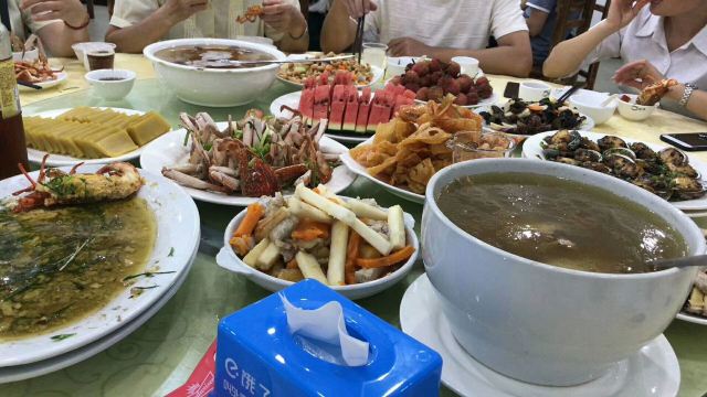 就餐环境卫生,停车方便,就在去闸坡海陵岛方向的路边,价格实惠比岛上便宜