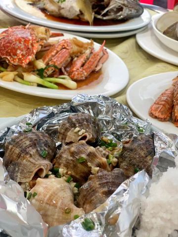 Cher1211来海陵岛这样吃海鲜才靠谱!可别踩雷了啊 来海边岛屿玩~难免想整一顿性价比不错的海鲜大餐,丰俭由人才是王道! 我们这一顿人均才80多❗可是吃到海鲜大餐❗ 新鲜程度真的🉑!海鲜都是养在海鲜池的,现点现捞,海鲜捞出来都是活蹦乱跳的!! 推荐菜单 ✔️盐焗花螺 盐焗就是那新鲜食材直接进行制作,主打就是一个原汁原味~所以很考验海鲜质量 吃一口鲜掉眉毛了🫣 ✔️海胆饭 海胆与米饭🍚进行翻炒的!碳水真的太香了讲道理!搭配着海鲜吃更香了! ✔️白灼虾🦐 虾捞出来活蹦乱跳的,个头都是蛮大只的 ✔️盐水海贝 🏠店名:秋姐美食店(保利店) 📍地址:海陵岛保利大道J区3栋13-16号