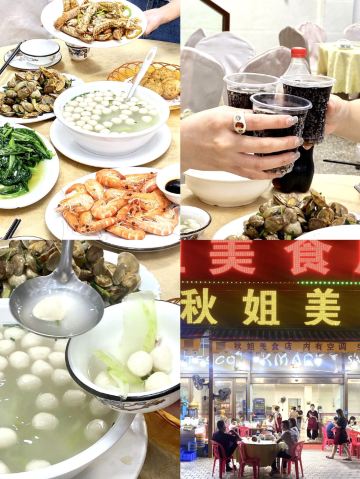 每天都很困诶来看我在阳江海陵岛挖到好吃的海鲜店!!! 只有在海陵岛,才能吃得了这么鲜美的海鲜!! 和朋友在夏天结束前又出发了一趟看海!! 晴天去的!!(这段时间台风天就不要去啦 ➿ 我们走走停停感觉好惬意!随机走进了一家海鲜 他们家有很大的海鲜吃 点单就立刻做 海鲜是现捞的 吃起来感觉还不错👍 ➿ 🔹海胆饭 这个真的不夸不行 朋友们嘎嘎炫 海胆粒粒鲜明 吃起来口感chao👍 还没来得及拍照 一碗又一碗就光盘了🤣 真是上菜一分钟 干饭三十秒!! ➿ 🔹盐水海贝 他们家的海贝真的好鲜嫩!! 而且每个🐚都很饱满圆润 一大碟吃先来好满足!! ➿ 🔹盐焗花螺 真的是盐焗!!花螺敲好吃🤤 花螺肉很大块 在海边吃到真的太快乐啦! ➿ 🔹马鲛鱼饭🔹泥焗鸡 🔹海鲜节瓜汤🔹姜葱炒蟹 🔹白灼虾🔹椒盐濑尿虾 🔹炒花甲🔹手打墨鱼饼 ➿ 🍽️秋姐美食店(保利店) 📍阳江市江城区海陵岛保利大道J区3栋13-16号 🈺️09:30-22:30 ➿