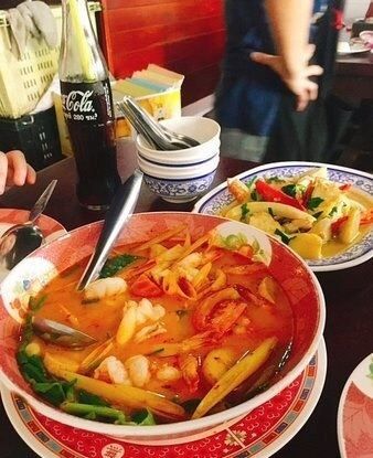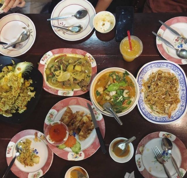 冬阴功,咖喱蟹,炸虾,泰式炒河粉,烤猪颈肉,芝士焗龙虾,芒果饭,绿咖喱鸡汤,芒果糯米饭,冬阴功汤,青木瓜沙拉,柠檬鱼,菠萝炒饭,绿咖喱鸡,海鲜炒米粉,黄咖喱死蟹,红咖喱鸡肉饭,海鲜粥,菠萝饭,酸辣洱海鱼,咖喱螃蟹,没一个好吃,沙冰果汁,bbq鸡肉