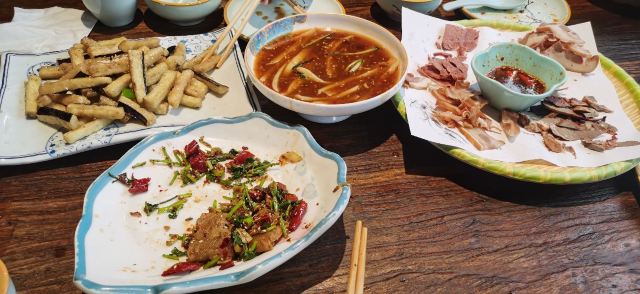 沁州黄米凉糕,平遥牛肉,酸汤莜面鱼鱼,八宝栲栳栳,香醋鸡蛋,老陈醋焖牛肉,传统过油肉,甲午茄子,传统糖醋丸子,平遥碗秃,老陈醋,牛肉刀削面,刀削面,过油肉