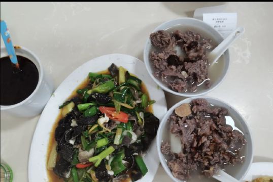 牛肉汤,炒牛肉,牛杂汤,炒杂烩,炒空心菜,炒牛血,炒牛杂,酸萝卜,炒青菜,百叶汤,蛋炒饭,炒牛面叶,鸡蛋饼