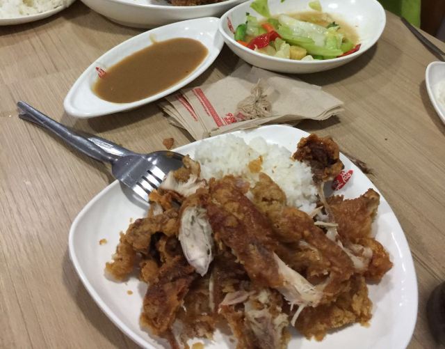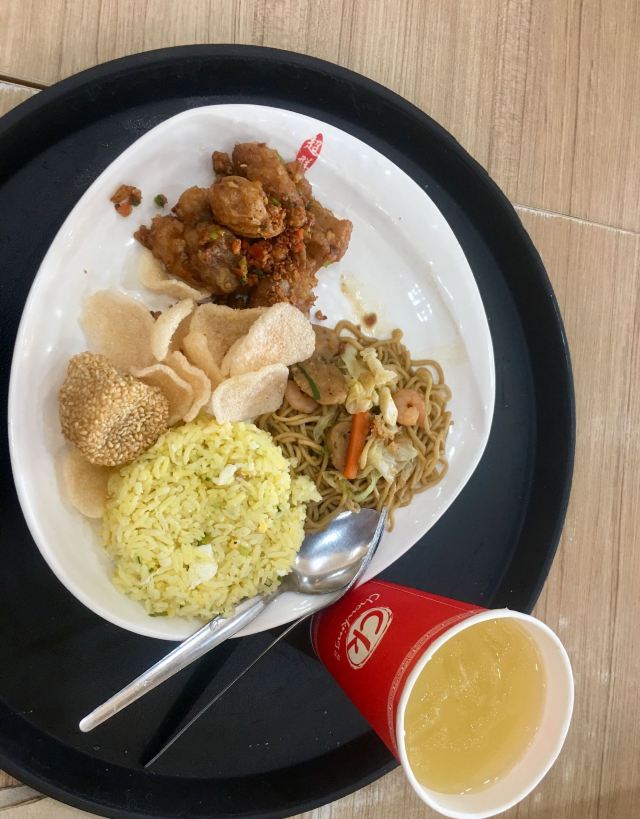 这是一家当地很有名气的中式快餐店,在菲律宾有许多分店,规模大小各有差异,提供早午晚餐,有炸鸡套餐、面条、炒饭等,价格实惠,颇受欢迎。