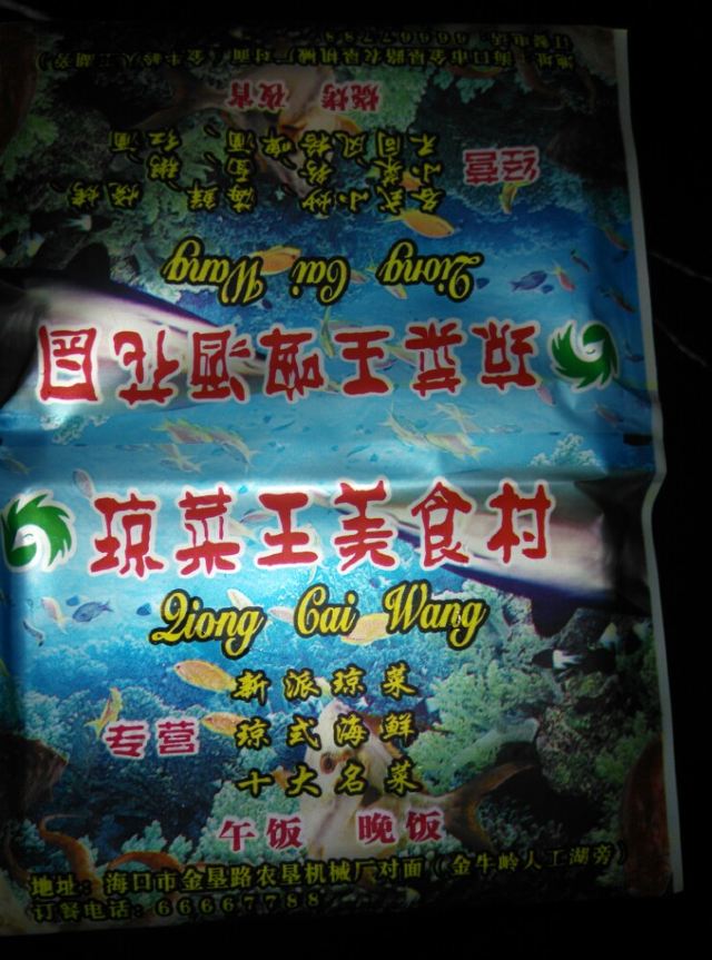 琼菜王美食村,位于海口市金牛岭公园南门,主营海南菜。海南菜首当其中的一个字是鲜,这些经典的菜肴里,新鲜的食材便是最大的亮点。椒盐皮皮虾,虾鲜肉肥,非常好吃,各色菜肴口味都不错。我也去过位于海甸岛世纪大道五四路的琼菜王,听说他们之间没有关系,两家都是海南特色菜,口味也都不错,但对两家的感受不一样。海甸岛的琼菜王给人的感觉就是很标准的餐厅,琼菜王美食村即有园林特色,规模大像迷宫,属于很好玩的餐厅。从内地来的朋友,要想让他感受当地海南地方风味,琼菜王美食村便是一个好地方。