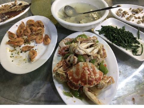 李晨辰在这里海口丁村万人海鲜广场#海口海鲜#海口美食#海口旅行#海口旅行攻略#海口美食攻略#海口海鲜攻略。 面朝大海鲜家的味道真的没的说,来之前在好多攻略上看到有提到面朝大海鲜家,第一天就直接来他们家了。第一天走得有点累就直接团购了,味道真的很不错,价位也很优惠!今天又来,还是果断的来了面朝大海鲜家,小妹带我们去市场买的海鲜。还极力帮我们杀价,把袋子里的水控干(这个一定要注意哟!不然水买海鲜价给你)很不错哦!味道好的没的说,加工费也不贵!极力推荐给大家。皮皮虾是一种营养丰富,汁鲜肉美的海昧食品,皮皮虾肉多,肉味鲜甜嫩滑。淡而柔软,并且有一种特别诱人的鲜味。服务很到位,环境也很干净,满意!他家的香辣蟹,辣炒芒果螺鸡腿螺都非常非常好吃而且的确是他们推荐的吃法更适合海鲜的口味,清蒸石斑鱼也很给力!菜品味道鲜美,色香味俱全,看着就有食欲,菜的分量十足,店内环境很好。整洁干净,服务态度热情周到,主动给清理台面。这个时间客人很多。但上菜的速度一点儿都不慢,一家人吃的很开心很满意!以后会经常光顾的,推荐!不愧是谭校长曾光顾过的店。
