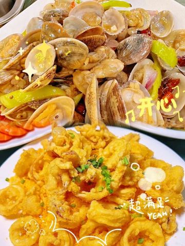 YoYo_9S9P3T0G就连明星都去打卡的海鲜大排档在这里~店里所有菜品价格💰都是透明的,就连厨房都有监控,可供食客随时查👀。 他家有专门的海鲜池,想吃什么直接去挑选,现点现捞现杀现做现吃,简直不要太新鲜。 各种生猛的海鲜🦐,随便闭着眼睛点都不会踩雷,是属于久久不吃会想念的餐厅。 这是连香港明星谭咏麟都夸👍的海鲜大排档呢❗️ 💟推荐的菜品 ✅清蒸兰花蟹 个人觉得螃蟹🦀还是清蒸的好吃,清蒸螃蟹我们选的兰花蟹,蟹肉比三点蟹多,而且肉质比较紧实,蟹黄也多,最适合清蒸了。 ✅白灼基围虾 白灼最能检验海鲜的新鲜度了,他家基围虾🦐就很适合白灼,因为很新鲜,不喜欢白灼的朋友可以选择香辣或者葱姜炒也很不错的。 ✅辣炒芒果螺 辣炒的芒果螺🐚壳薄肉厚,香辣🌶鲜嫩,入口爆汁,下🍚下🍺都很适合,现在想想都在流口水🤤。 ✅香炸鱿鱼圈 个人觉得很有特色,油炸的鱿鱼圈裹着一层薄薄的淀粉,外皮很酥脆,鱿鱼肉🦑却很香嫩,一口🍺一口🦑,简直不要太爽。 💥位置好找,在丁村万人海鲜广场里(距离海口高铁东站不远),停车方便,🚘、🛵、🚲都可停! 店名:面朝大海鲜(丁村万人海鲜广场店) 地址:迎宾大道丁村万人海鲜广场正门大章鱼路海棠湾2号 营业时间10:00~22:00