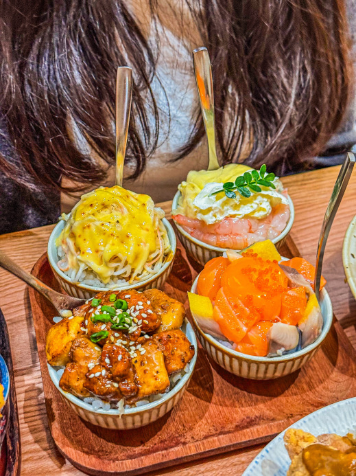 火炙法国鹅肝寿司,火炙鳗鱼寿司,厚切牛舌铁板烧,火炙芝士鹅肝寿司,三文鱼刺身,火炙芝士法国鹅肝寿司,町屋土豆泥,和牛寿喜锅,火炙特厚鳗鱼寿司,芝士海鲜焗饭,熟食拼盘,中华海草,天妇罗虾卷,鱼皮寿司,海鲜