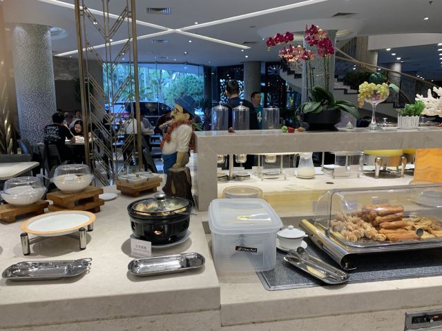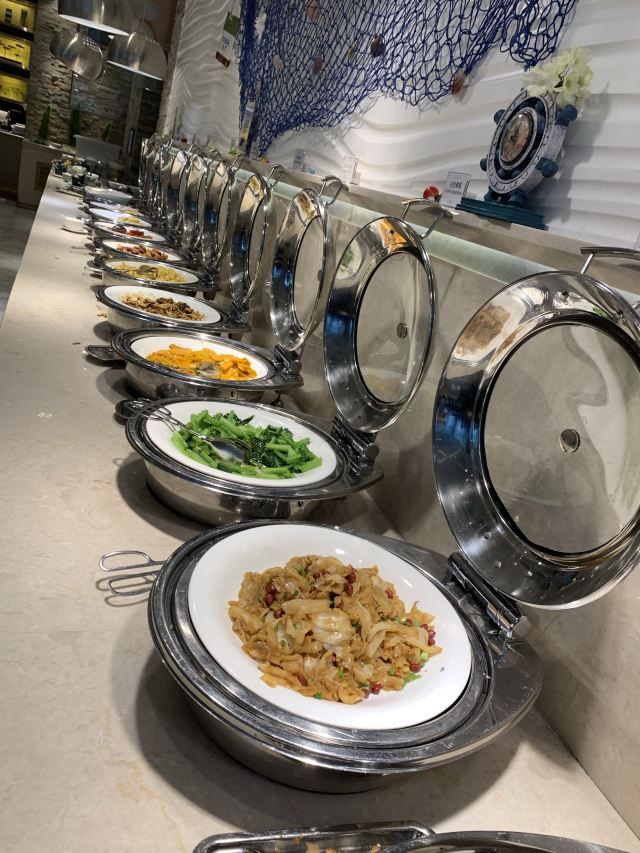 金不换茄子,咸鱼炒芥兰,三巴酱四季豆,金不换牛柳鲜笋,泰式炒什菜,泰式猪劲肉,咖喱皇烩海鲜,泰式咖喱鸡柳,咖喱蟹,咖喱虾球,早餐,炒河粉,牛肉炒面,自助午餐