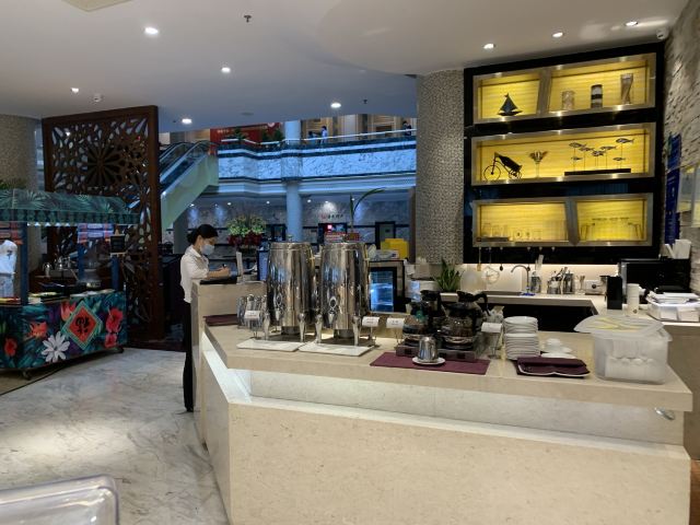 再次入住宝华海景大酒店在咖啡厅用早餐,向服务员问询奶酪在何处,旁边大厨让服务员从后厨取来芝士片,同时解释,需要冷藏所以没有摆在台上,需要可以向提出,感觉服务态度诚恳。有了芝士,咖啡厅早餐品类就圆满了。早餐品种非常齐全,中西、南北品种都有,口味挺好的。重点是咖啡浓郁,服务周到。