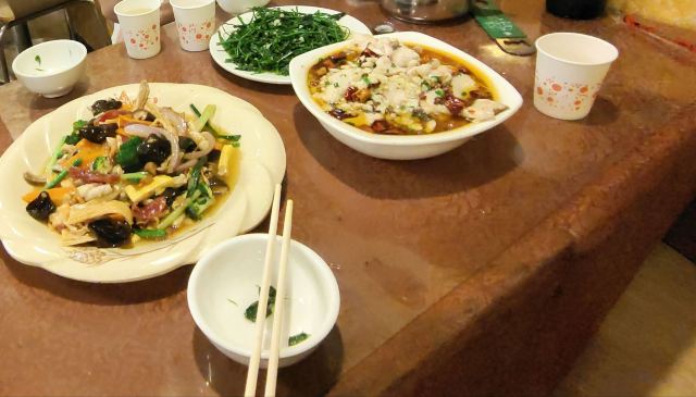 YoYo_1O3H6G0M非常一般,服务员推荐的一个全家福,问她里面有什么,各种海货说的天花乱坠,上来一看胡萝卜木耳腐竹洋葱花菜,缪缪几点猪肚虾仁,还是干货,甚至还没发透。一个五指山野菜味道像豌豆芽,口感很脆,还行,但是根部有点柴。最后一个水煮鱼片,味道像水一样寡淡,三个人最后剩了大半碗,但凡刺少一点都吃完了,是我吃过刺最多最难吃的水煮鱼片。 以上,菜太难吃,我一般不会多说,只是避个雷,以后不会再来,但是服务差惹的心里不舒服,就必须说道了,环境很热,坐在那里头发湿完,浑身湿透。茶水不问就不上。餐具没有独立包装,不提供纸巾。 如果上述是当地特色,就当我没说。