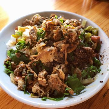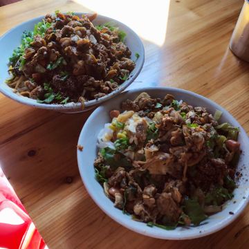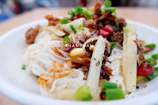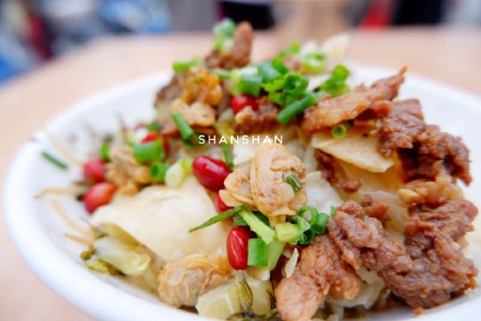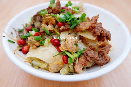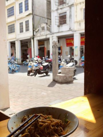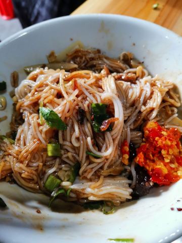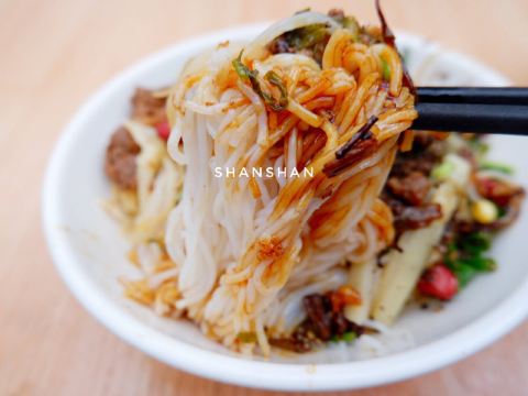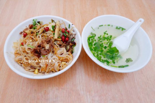 Yamei Hainan Rice Noodle西门街仅有短短的两三百米长,在小街的中段,可以很容易地找到这家传说中的老字号粉店。海南话把“阿妹”叫做“亚妹”,粗听“亚妹粉店”这个店名,许多人都会以为老板娘“亚妹”应该是一位二三十岁的年轻妇女,实际上,这位“亚妹”姓潘,已经70岁了。 亚妹海南粉的配料十分丰富,多达十几种,包括牛肉干、猪肉干、油炸花生仁、炸酥、黄豆芽、酸菜末、蒜泥末、芝麻末、碎葱末、碎香菜,以及酱油、秘制调味汁等等。 店里面积不大却干净整洁,小小的店面里坐满了前来吃粉的食客,先来的找个空位坐下,点上一碗“海南粉”埋头就吃,吃完人一走,空碗马上就会被端走,桌子也会立即清理干净,后到的再补上,一波接着一波,店里显得十分热闹。 那碗看起来不起眼的海白汤非常鲜,卤汁串起整碗的海南粉,咸,甜,酱香味,加入了花生,巧果,富有层次感。嫩白柔软的米粉撒上香脆面片、花生仁、黄豆芽、牛肉丝等配料,再淋上一层秘制竹笋调味汁,吃前把粉搅拌均匀,再添点辣椒酱,真是极好的! 其实各家海南粉店的配料基本上大同小异,关键是在于米粉的口感质量和独家秘制芡汁所带来的味觉变化。特别值得一提的是,海南粉中的这种小片的脆炸面片,海南话叫“炸酥”,吃起来香香脆脆的。 ❤️❤️记住,正宗海口老街坊的海南粉吃法是酱紫的——将碗里的粉吃到快完时留下一些,到店员那里舀一小勺拌粉的秘制调味汁(里面有些许笋丝,做汤最好),煤球炉上的大水壶里装着的是热乎乎的清淡海螺汤,把这些一股脑儿地冲入碗中,此时腌粉就立马变身成了汤粉,咸鲜酸甜,又是另一番滋味,还不带丝毫浪费,直喝个底朝天。吃饱喝足后,买单走人,最捞的海口STYLE生活就这么精神抖擞地从一碗海南粉开始了!