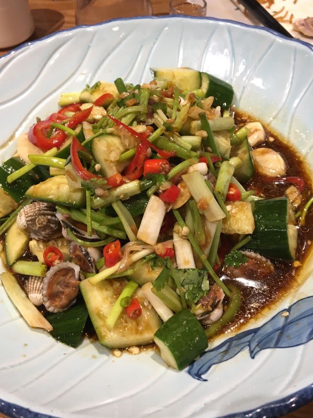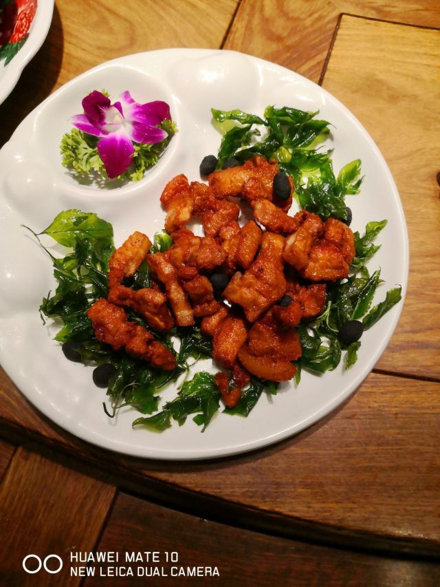 琼菜王 在海口见到多家琼菜王餐厅,今天中午位于海甸岛世纪大道五四路的琼菜王餐厅用餐。这家餐厅以经营海南菜为特色,口味不错,明厨亮灶,服务热情。海南菜与粤菜相比更清淡,以新鲜食材为原料,烹饪方法简单,以炖煮为主。尔今天的梅酱脆大肠有些九转大肠的味道,外皮有脆感 挺不错的,鲜莲梗也是第一次吃,感觉不错,唯独鲜鲍鱼与西红柿在一起,遮掩了鲍鱼的鲜,有点得不偿失。这两天的海南菜给我印象深刻,吃海南菜还要来海南。