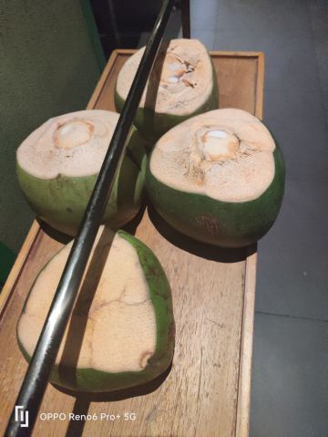 Chicken inside Coconut【口味】三个椰子一锅鸡汤底清爽鲜甜本土走地文昌鸡肉质鲜嫩现开椰子看得到的新鲜。 【服务】煮鸡肉真的很讲究,服务员会拿小鸡计时器严格控制每道菜品的烹煮时间,让每一道菜到你嘴里的时候都恰到好处。 【环境】门口的水吧和小鸡logo拍照真的太容易出片了。