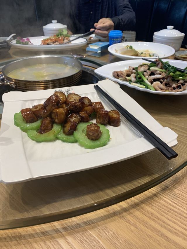琼菜王 在海口见到多家琼菜王餐厅,今天中午位于海甸岛世纪大道五四路的琼菜王餐厅用餐。这家餐厅以经营海南菜为特色,口味不错,明厨亮灶,服务热情。海南菜与粤菜相比更清淡,以新鲜食材为原料,烹饪方法简单,以炖煮为主。尔今天的梅酱脆大肠有些九转大肠的味道,外皮有脆感 挺不错的,鲜莲梗也是第一次吃,感觉不错。这两天的海南菜给我印象深刻,吃海南菜还要来海南。