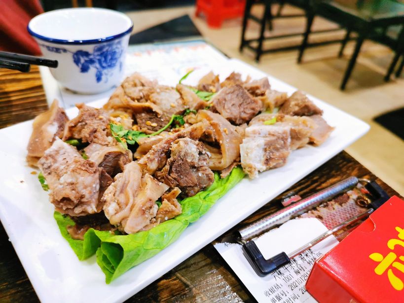 炸豆皮,牛腩,炸腐竹,拍黄瓜,锡兰冰红茶,糟粕醋斋菜煲,招牌牛杂煲(香辣),招牌牛杂煲(原味),招牌牛杂煲(糟粕醋),原味斋菜煲