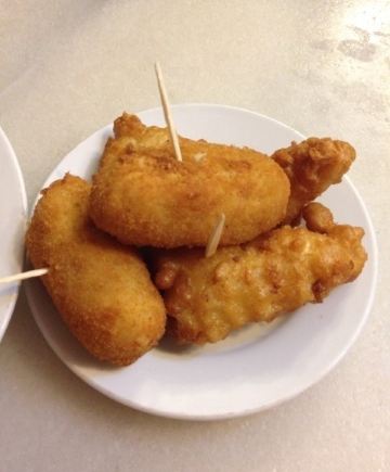 炸鳕鱼,土豆洋葱鸡蛋沙拉,炸土豆鳕鱼球,饺子,塔帕斯,Tapas,奶油炸丸子,马德里烩菜, 炸鱿鱼圈,烤鳕鱼,鳕鱼丸子,炸鳕鱼块