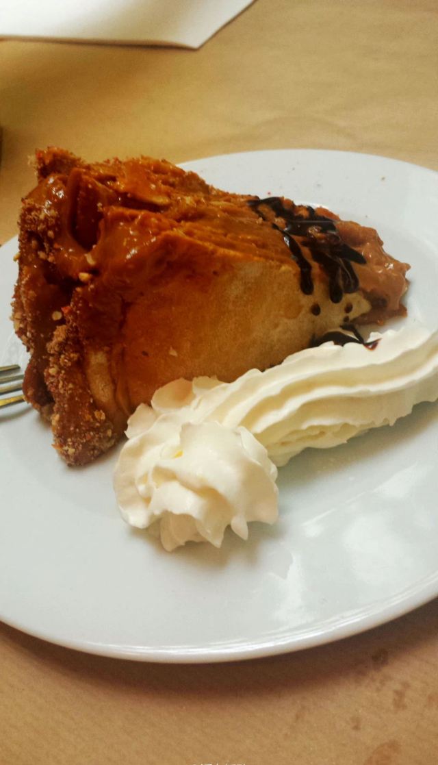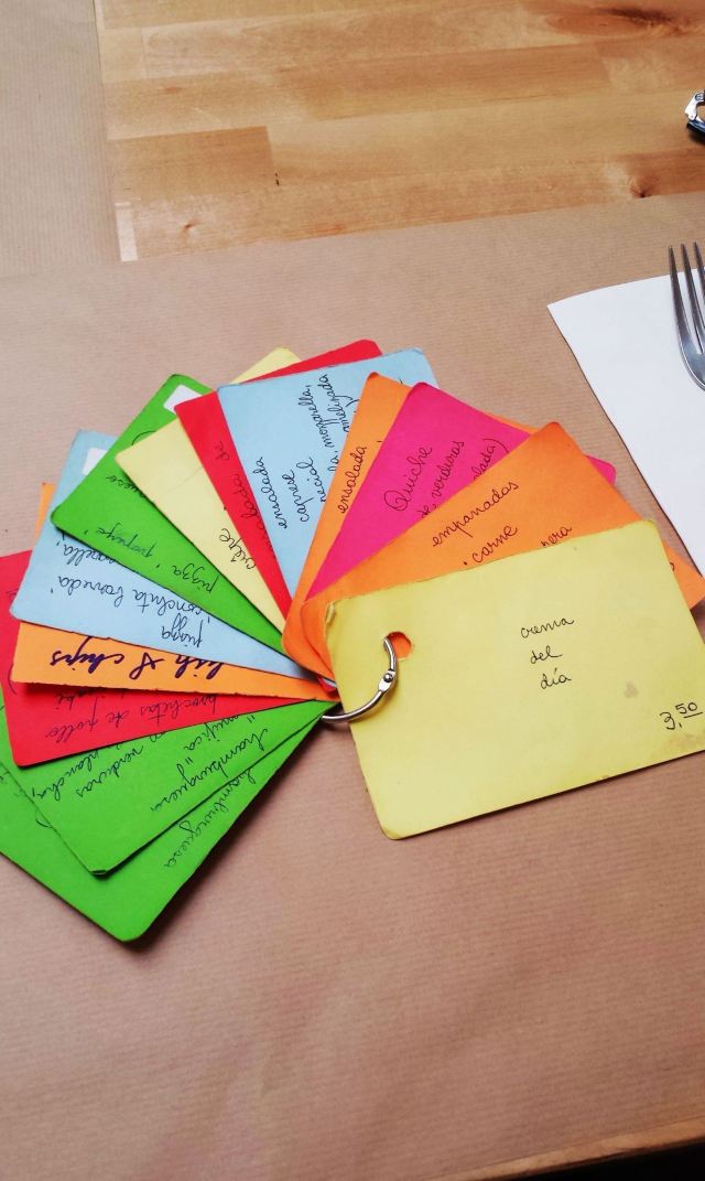环境轻松舒适、服务员很热情、菜肴口味不错关键是便宜。除了固定菜单每天有两三种额外菜肴。前菜Crema del día里推荐Maiz puerro y manzana(不是每天都有),蜜枣Empanada也可以尝试。不愧5分评分!唯一小不足是不能刷卡
