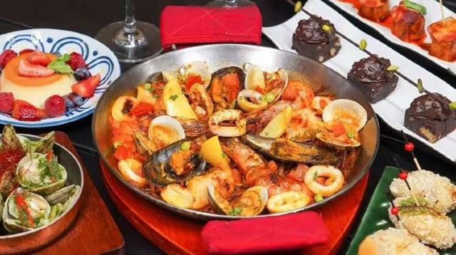 这家餐厅主要经营海鲜类菜品,从龙虾到蟹、贝类等应有尽有。西班牙海鲜饭是这里的一大特色,鲜红色的饭粒与蚌、虾、扇贝等共同烹制,香气令人垂涎。