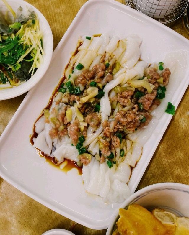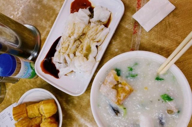 旅游度假生滚粥恨不得哦,里面的食材都是最新鲜的哦,那个肠粉做的也很好吃哦,用的是古法肠粉制作的方法,肠粉很滑,配上特色酱油很好吃。