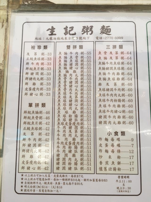 来香港寻找美食的时候千万别忘记了去尝一尝生记的热腾粥,加上你喜欢的配料,再来点小菜,虽然是一碗粥,但带给你的回味决不亚于任何一款香港美食